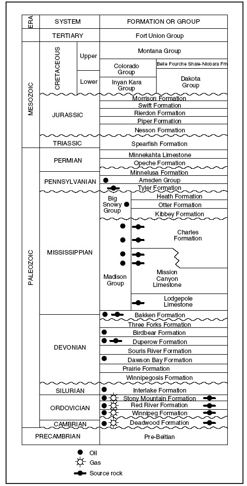 Williston Basin Stratigraphic ColumnThe Stratigraphic Column of the Williston Basin shows the different geological formations found at various depths in the region. The most productive layers recently have been the Bakken and Three Forks formations. However, there is now renewed interest in the Spearfish formation, and continuing interest in the Lodgepole, Mission Canyon, Birdbear, and Red River formations.